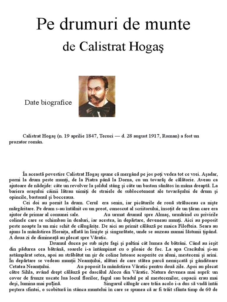 Pe Drumuri De Munte De Calistrat Hogas Carti Regale Source from : http://www.cartiregale.ro/bibliografie-scolara/1789-pe-drumuri-de-munte-de-calistrat-hogas.html Critiques, citations (7), extraits de pe drumuri de munte de calistrat hogaș. Kívánságlistára teszem ezt a könyvet! Cele mai bune referate despre hogas calistrat pe drumuri de munte de nota 10. Le titre se traduit par « sur les chemins de montagne ». Alege cel mai bun referat din aceasta cautare si descarca gratuit.