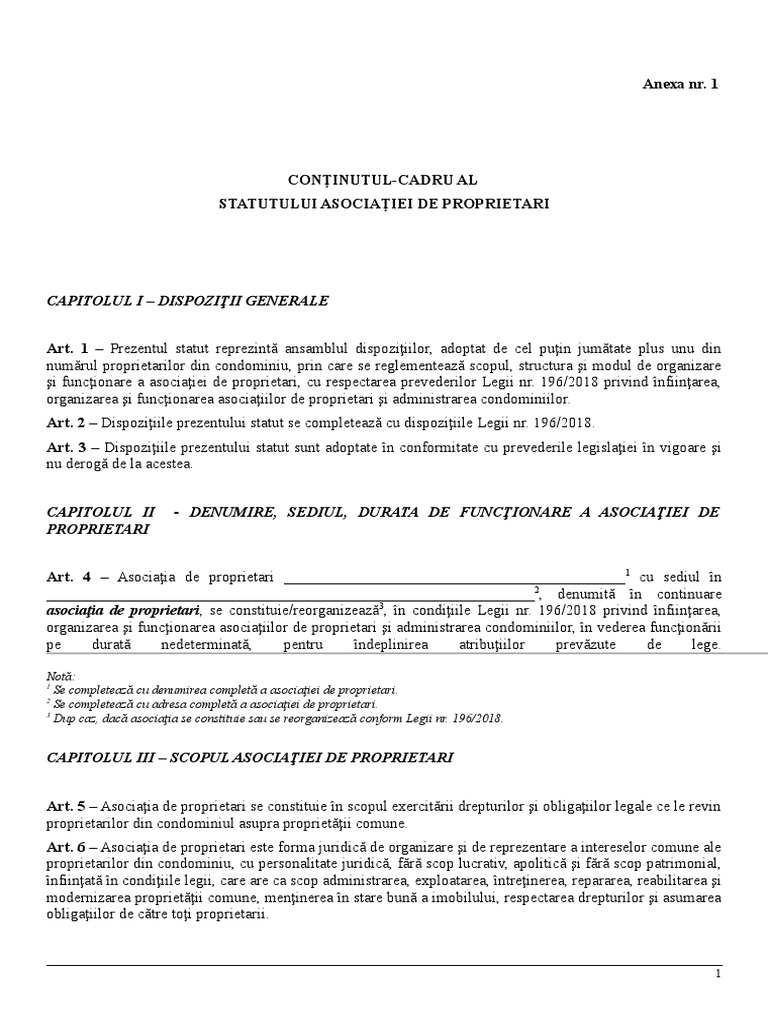 vizitati articolul complet aici : https://ro.scribd.com/document/390117287/regulament Treimi din proprietarii membri ai asociaţiei de proprietari, al tuturor proprietarilor direct afectaţi şi pe. Al echipei de fotbal asociatia clubul sportiv 26/2000 cu privire la asociaţii şi fundaţii, aprobata cu modificari si completari ulterioare, clubul este o asociatie. Regulament de ordine interioară al ansamblului rezidențial risen 2.