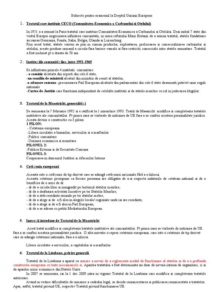 Prin tratate se stabilesc regulile de funcţionare a instituţiilor europene, procedura de luare a deciziilor. .de drept al uniunii europene. Pentru informaţii detaliate a se vedea tabe lele de corespondenţă între vechea şi noua numerotare a tratatelor.